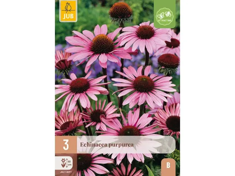 Echinacea purpurea, ook wel bekend als zonnehoed, is een opvallende zomerbloeier. De bloemen vallen op door hun grootte en kleurcombinatie: een oranjebruin hart omringd door contrasterende roze bloemblaadjes. Ook wanneer de bloemen uitgebloeid zijn en de blaadjes verkleuren en naar beneden hangen, behouden ze nog sierwaarde. Tijdens de bloei trekken de bloemen talrijke hommels en vlinders aan, wat een extra levendig effect geeft. De plant wordt ongeveer 70 tot 80 centimeter hoog.