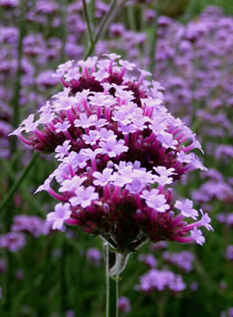 Vaste planten: uiteraard zoeken we vaste planten die lang geurend en kleurrijk bloeien zoals bijvoorbeeld Ijzerhard (Verbena bonariensis), verschillende salvia varianten, uiteraard lavendel (Lavandula angustifolia) en ook de Russische variant (Perovskia atriplicifolia) doet het goed bij hommels en bijen.