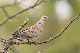 De zomertortel is relatief klein in vergelijking met andere duiven, met een volwassen lengte van ongeveer 25 cm. Je herkent hem vooral aan zijn prachtige schubbenpatroon op de vleugels en de opvallende zwartblauwe tekening in de nek. Het is de mooiste duif die je bij ons kunt vinden! Ondanks dat deze vogel vrij schuw is, verraadt hij zijn aanwezigheid met zijn herkenbare roep.