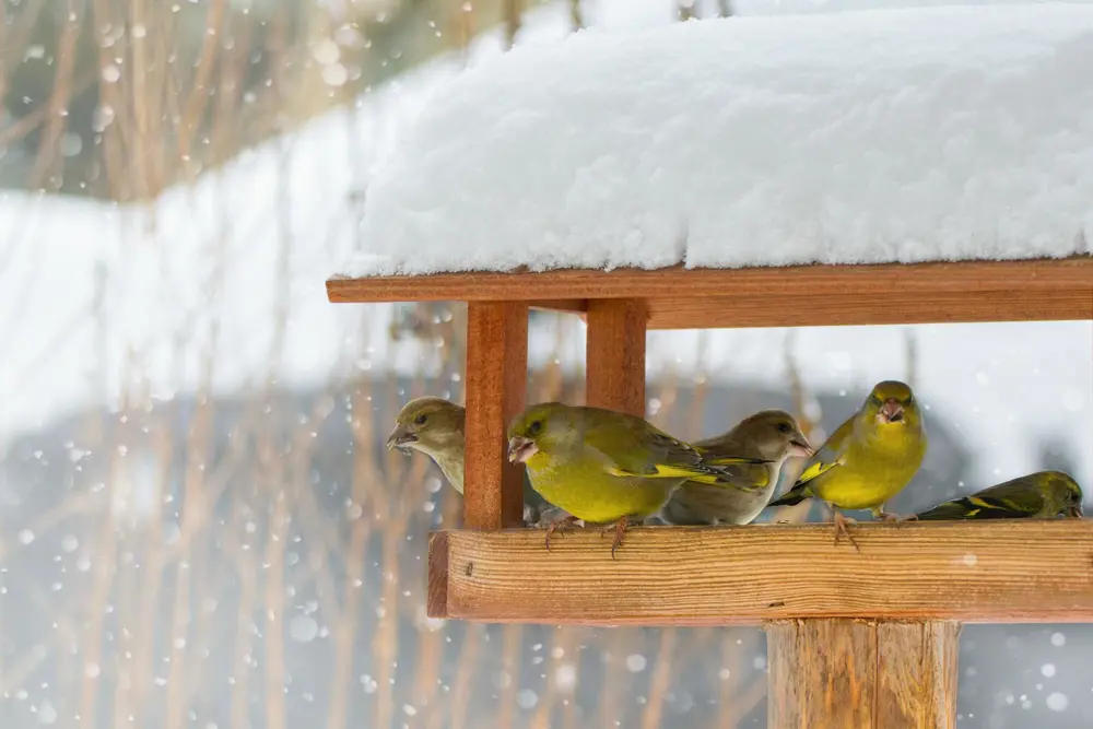 - Zorg voor een afdakje boven de voederplank, zodat deze sneeuw- en regenvrij blijft.