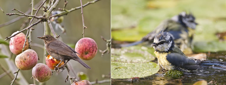 Heb je fruitbomen in de tuin, laat dan in de herfst wat fruit liggen. Merels, lijsters en spreeuwen zullen het maar wat graag opsmullen. Ook rozenbottels vormen 's winters een lekker vogelmaaltje.