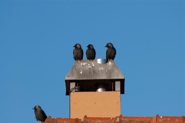 Kauwen zie je vaak in grote groepen in steden. Net als mussen zijn het sociale vogels die graag dicht bij elkaar leven. Omdat kauwen holenbroeders zijn, is het lastig om een hele kolonie op korte afstand te huisvesten. De ontdekking van de schouw bleek daarvoor een perfecte oplossing.
