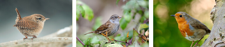 Winterkoning, heggenmus en roodborst