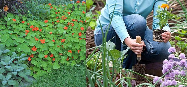 Veelal zijn de combinaties gebaseerd op de aantrekkingskracht of net de afstoting van plaagdieren die bepaalde planten veroorzaken. Geur is hierbij een belangrijke factor die mooi kan aangetoond worden aan de hand van de alomgekende lage afrikaantjes (Tagetes patula). De zogenaamde 'stinkertjes' verspreiden een stof via hun wortels waardoor aaltjes worden geweerd. Deze planten kunnen wonderen verrichten in een rozenperk, ze zullen de parasiterende aaltjes weghouden van bij de rozenwortels. Ook in de groentetuin hebben gewassen zoals aardappelen, tomaten en aubergines baat bij de aanwezigheid van Tagetes patula. Ook de sterke geur van de bloemen overheerst de geur van andere gewassen zodat plaagdieren ze niet meer herkennen.