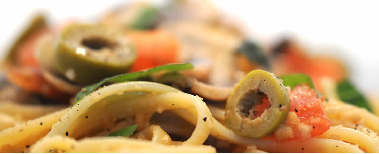 7. Snijd de olijven in schelletjes en meng deze ook onder de pasta.