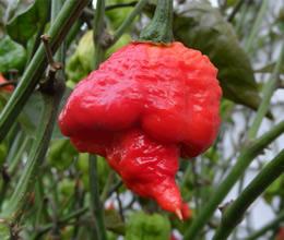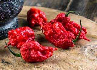 Uiteraard zijn records er om te verbreken en komen we zo bij de twee heetste pepers ter wereld. Naga Viper werd zo'n vijf jaar geleden onttroond door Trinidad Moruga Scorpion die als eerste hybride de kaap van 2.000.000 SHU bereikt. Een bereiding met deze peper vraagt gasmaskers en veiligheidpakken en gevoelloze handen zijn vaak het gevolg van het contact met deze superhete vruchten. And last but not least...de winnaar en nog steeds op nummer één Carolina Reaper, de aller pittigste met een éénmalige topper van 2.200.000 SHU. Voor de volledigheid nog even meegeven dat deze peper een fruitige smaak heeft.