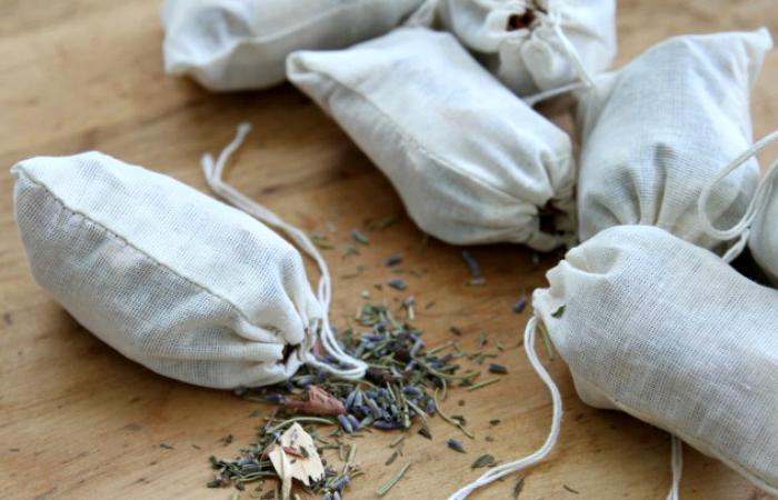 Maak een zakje van linnen of katoen en vul het met het gekozen kruid. Deze zakjes zijn ook leuk om muffe geurtjes in de kleerkast te bestrijden.
