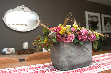 Je hoeft niet altijd bloemen te kopen om een mooi bloemstuk te maken. Kijk eens rond in je buurt in het weiland of in de berm. Je ontdekt er braambessen, verschillende soorten grassen, tarwearen, witte achillea (duizendblad), boerenwormkruid en nog zoveel andere soorten waarmee je een prachtige schikking kan maken. Zelfs uitgebloeide bloemen zoals fluitenkruid en gedroogde grassen en zaden zijn bruikbaar. Let op dat je geen beschermde plantensoorten gebruikt en kijk uit naar planten en bloemen met een stevige stengel.