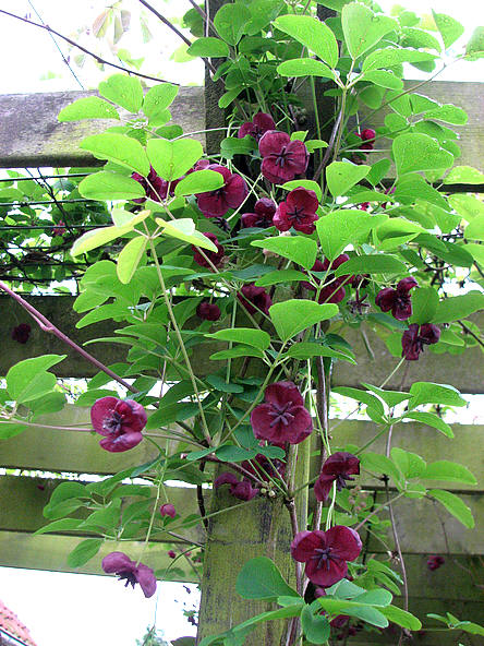 Nederlandse naam: Schijnaugurk / klimbes / chocoladerank / chocoladeklimmer / chocoladewingerd / vijfbladige akebia