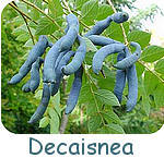 Denk bij blauw niet alleen aan kwetsen en pruimen (Prunus-soorten), hoewel die vaak prachtig blauw zijn. Misschien schieten u allereerst de blauwe druiven in gedachten (Vitis vinifera) waar ook Atalanta-vlinders gek op zijn.Prachtig blauw berijpt zijn de bessen van de Amerikaanse bosbes of blauwe bes (Vaccinium corymbosum) die van zure grond houdt en waarvan de bessen veel groter zijn dan van onze inheemse wilde bosbes (Vaccinium myrtillus; ook met blauwe vruchten) die zoveel vitamine A., B en C bevatten. Jeneverbessen (Juniperus communis) zijn ook blauw. Bij de sierheesters worden vooral de mahoniestruik (Mahonia aquifolium) met zijn sterk geurende gele bloemen, Berberis julianae en diverse Viburnum-soorten met blauwe bessen getooid. Heel fraai zijn die vruchten bij Viburnum davidii en V. tinus ‘Gwenllian’. Het is niet algemeen bekend dat de blauwe bessen van de mahoniestruik eetbaar zijn. Van de sleedoorn (Prunus spinosa) weet men dat wel. Zo uit de hand zijn ze niet lekker, maar verwerkt in jams smaken ze heerlijk. Ook eetbaar: de opvallend blauw berijpte peulen (geen bessen) van de bijzondere, tot 2 m hoge augurkenstruik (Decaisnea fargesii).