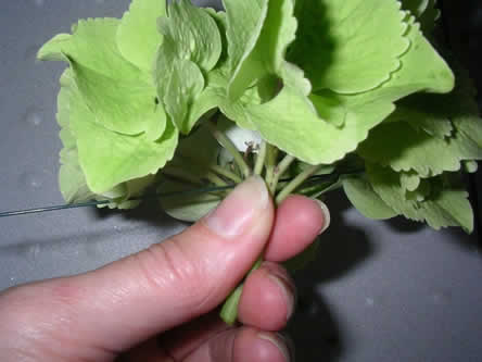 - Maak toefjes van de Hydrangea en zet deze op draad 0.4 of 0.6.