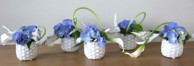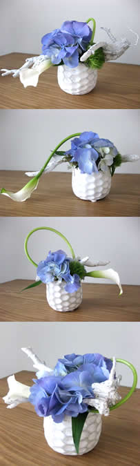 - Snij toefjes Hortensia schuin aan en zet op draad.