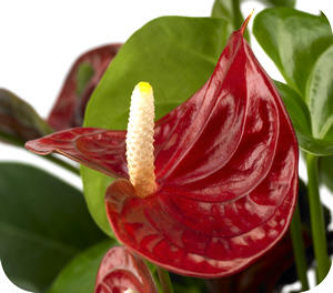 Anthurium is door de rode en witte kleur een aantrekkelijk product voor de kerstperiode.
