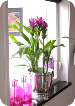 - Op een warme, lichte plek maakt de Curcuma grote bloemen, die drie weken achter elkaar kunnen bloeien.