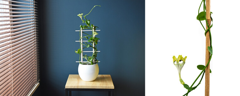 De plant kent zijn roots in Zuid-Afrika en maakt deel uit van het geslacht van de lantaarnplanten. Bij ons is het een geweldige kamerplant die vanwege zijn unieke uiterlijk opvalt in de woonkamer. Net zoals de Aloë Vera is het is een succulent of vetplant die makkelijk te houden is en weinig verzorging vraagt. Zijn slanke groene stengels met mooie glanzende bladeren kunnen tot wel 120 cm hoog klimmen.