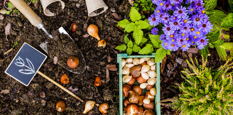 • Markeer de plaatsen waar je al bollen hebt geplant met kleine stokjes, zodat je niet opnieuw een gat graaft waar je reeds een bloembol hebt geplant.