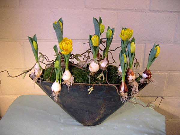 Heel wat lentebloemen worden de laatste jaren ook met hun bloembol er nog aan verwerkt. Dat heeft het voordeel dat de bloemen voeding rechtsreeks uit de bloembol halen en ze daarom langer mooi blijven. Vooral bij tulpen is dit het geval omdat een tulp toch een vrij korte levensduur heeft in onze warme huiskamers.