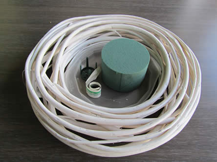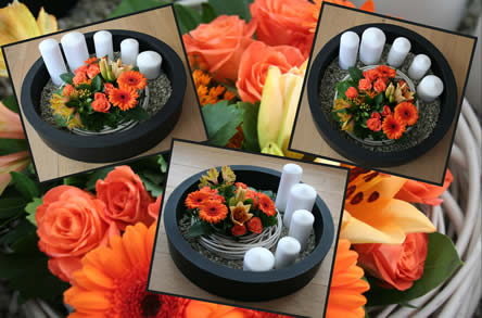 • De schaal kan ook zonder de kaarsen gevuld worden met de bloemen, dan leg je de krans in het midden.