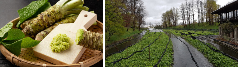 De echte wasabi wordt gemaakt uit de wortelstam van de wasabi plant, heeft een opvallende groene kleur en een veel mildere smaak dan imitatie wasabi. De plant komt oorspronkelijk enkel in Japan voor en groeit in moerassige gebieden en langs rivieren. Na het raspen van de wortel, verliest hij heel snel zijn typische smaak en is zuiver en onverpakt slechts een 25 minuten houdbaar. In de diepvries of gemengd in een bereiding is het iets langer houdbaar.