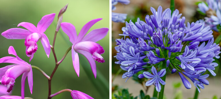 - Bletilla striata, aardorchidee of Japanse orchis, is een moerasplant met zwaardvormige bladeren. Van juni tot juli verschijnen fraaie, paarse bloemen die zo’n 35 cm hoog worden. De bloemen hebben een drielobbige onderlip waarbij de onderste geelwitte strepen heeft. Plant ze op een plek met lichte schaduw in een vochtige, goed doorlatende, vruchtbare grond. Deze tuinorchis prefereert een vochtige grond maar is toch ook vrij droogtetolerant. Bletilla is redelijk winterhard maar stelt een beschermende mulchlaag wel op prijs.