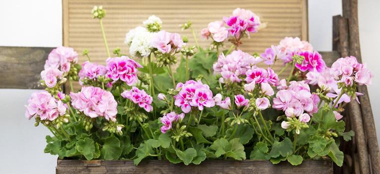 Geraniums zijn sterke zomerbloeiers en staan garant voor een uitbundige bloemenzee. Zet ze op een zonnig plekje of in de halfschaduw. Geef regelmatig water en verwijder de uitgebloeide bloemetjes. De geranium maakt dan continu nieuwe bloemknoppen aan. De bloei duurt tot diep in het najaar. Voor een extra uitbundige bloei geef je eens per twee weken plantenvoeding.