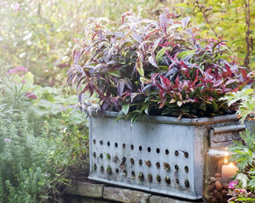 Een grote metalen bak zorgt voor een stoerdere sfeer. Zeker wanneer de bak door weersinvloeden een verweerde look heeft.