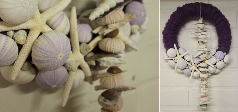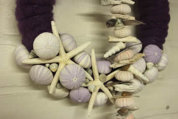 • Verschillende soorten schelpen en zeesterren: hier in paarse tinten om ton sur ton te zijn met de rest van de krans.