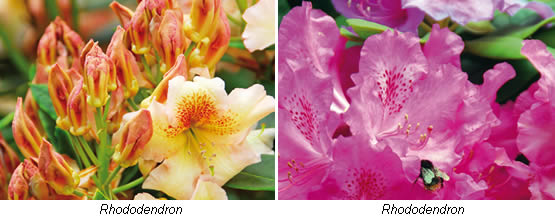 Het geslacht Rhododendron bevat vele soorten, zowel bladverliezende als groenblijvende struiken. In het overdadige kleurenpalet ontbreekt slechts puur blauw.