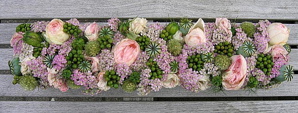 Indien je ook groenvulling wil gebruiken (dan hoef je zoveel tuinbloemen niet te knippen), kun je buxus, Hebe, appelblad (Gaultheria shallon) synoniem salalblad, klimop (= Hedera), rotsheide (= Pieris), laurierkers (= Prunus Laurocerasus), vleesbes (= Sarcococca), spierstruik (= Spiraea), Viburnum tinus,enz… gebruiken.