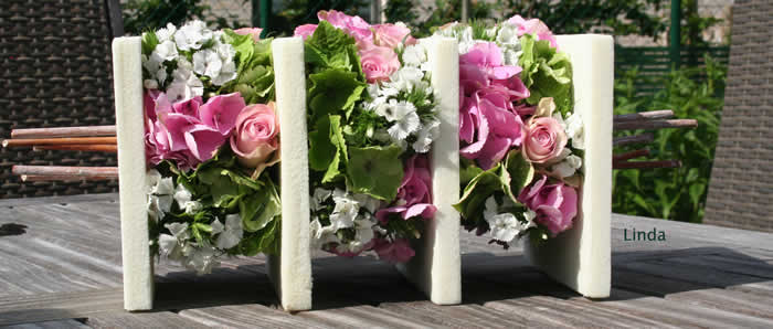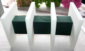 - Verwerk de bloemen zodanig dat ze binnen het vierkante(hier wit) steekschuim blijven.