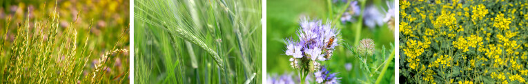 Phacelia (Phacelia tanacetifolia): wordt ook bijenbrood of bijenvoer genaamd. De mooie paarse geurende bloemen produceren veel nectar en zijn dus goed voor de bijen. Phacelia verlangt een vochtige bodem om nectar te kunnen aanmaken. Onder droge omstandigheden wordt er enkel stuifmeel geproduceerd. Groeit snel en is dus goed om onkruid te onderdrukken. Kan niet goed tegen lage temperaturen.
