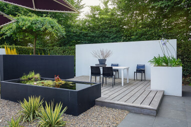 Denk ook aan groen: een sierboom zoals een magnolia of sierkers voegt kleur en karakter toe. Heb je iets meer ruimte? Dan kun je siergrassen toevoegen en klimplanten langs de tuinmuur laten groeien voor extra diepte en sfeer.
