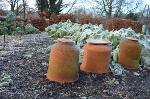 Enkele groenten kunnen al in februari geforceerd en gebleekt worden. Dit kan bijvoorbeeld met zeekool en aardperen, maar ook met rabarber. Dit doe je door donkere stolpen, zwarte bloempotten of emmers boven de planten te plaatsen. Van zodra er een beetje zon verschijnt, wordt het onder de stolpen warmer waardoor de planten sneller op gang zullen komen. Alles wat onder de stolpen groeit zal meteen ook gebleekt zijn, dit komt doordat er minder licht is, wat zorgt voor een subtielere smaak. Voor rabarber gebruik je best een extra grote klok.