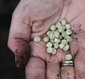 • Doperwten kunnen nu worden gezaaid. Week de zaden eerst een nacht en zaai ze de volgende dag per twee op 10 cm van elkaar in rijen.