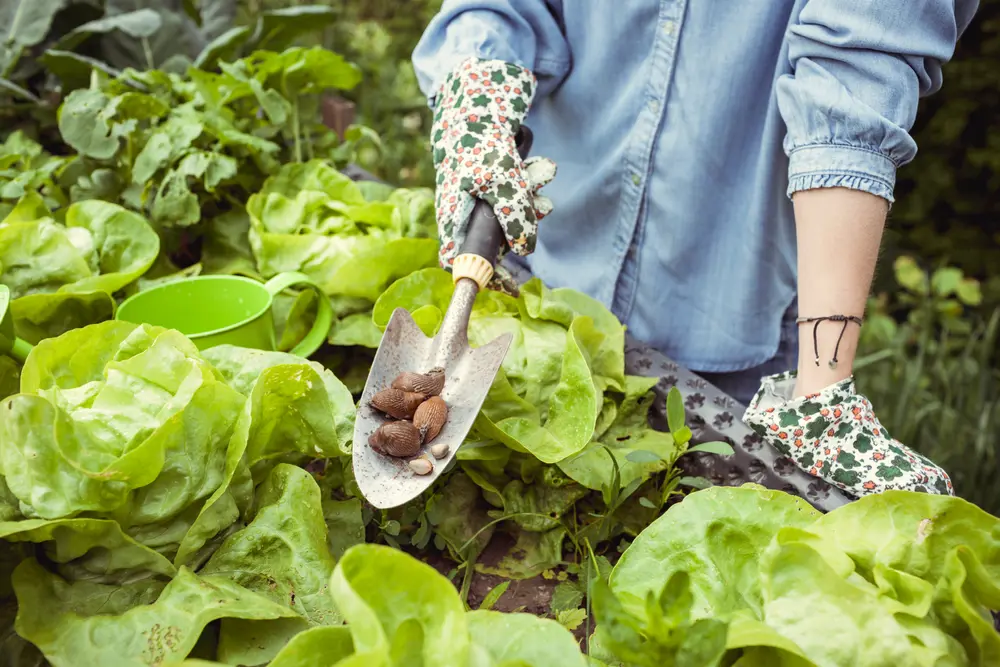 Verplant jonge koolplanten van het wachtbed naar hun definitieve plek, met 50–60 cm tussenruimte. Zaai rondom de planten een cirkel van tuinkers of gemengde pluksla; oogst deze bladgroenten voordat de kool te groot wordt.