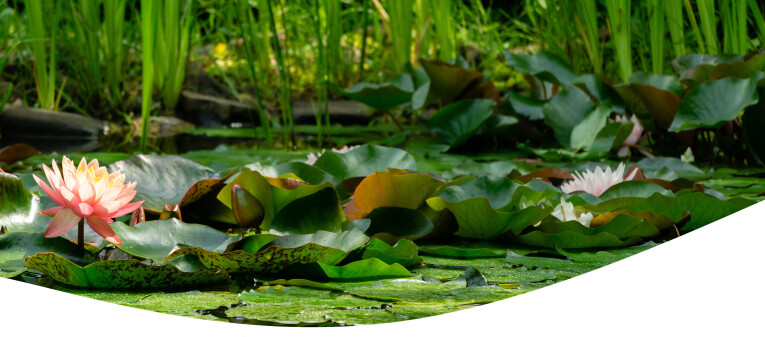 - Geef de vijver voldoende schaduw wanneer hij volledig in de zon ligt. Te veel zon zorgt voor een grote algengroei die de kwaliteit van de vijver laat zakken. Creër schaduw door het plaatsen van een schaduwdoek/parasol of zorg voor voldoende drijfplanten met grote bladeren zoals een waterlelie.