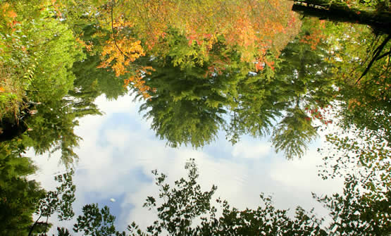 Een spiegelvijver reflecteert de wolkenluchten en beweging aan de hemel Maar het tuinleven wordt pas echt compleet met een vijver waarin planten mogen groeien. Niet alleen drijvende planten en planten met drijvende bladeren zoals waterlelies, maar ook (heel belangrijk!) onderwaterplanten (de zogenaamde zuurstofplanten) en vooral oever- en moerasplanten. Oever- en moerasplanten zijn niet alleen heel mooi, sommige brengen ook zuurstof in het water en helpen zo mee aan het handhaven van een goede waterkwaliteit in een gezonde vijver.