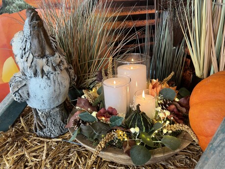 - Vul de vazen met kaarsen en je herststuk is klaar.