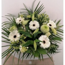Boeket Yasmina Luxe - wit Verwen jezelf of verras jouw vriend(in), kennis of familielid aan de deur met dit fris en fleurig wit boeket. Het boeket is samengesteld uit verschillende bloemen waaronder Alstroemeria, Chrysanten, Eustoma, Dianthus, Gerbera, Lilium, Ornithogalum Saundersiae, Tanacetum en rozen. Het boeket is afgewerkt met bladgroen zoals Asparagus, Dwergdadelpalm, appeltjesblad en Australische laurier. (, vanaf € 39,95) |