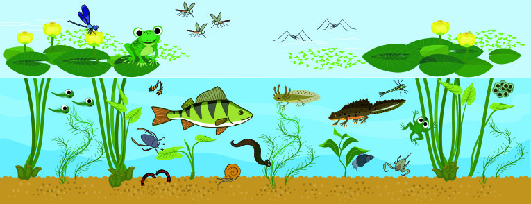 De diversiteit wordt bepaald door een aantal factoren. De opbouw en de ligging van de vijver zijn daarbij belangrijk maar ook de hoeveelheid zonlicht. Ligt de vijver op een plekje in de schaduw of eerder op een zonnige plek? Staan er bomen rond de vijver? Is de tuin ingesloten of toegankelijk voor wilde dieren?