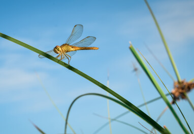 Ook insecten worden aangetrokken door water. Muggen, libellen en waterjuffers leggen hun eitjes net onder het wateroppervlak. Het zijn de perfecte indicatoren voor de kwaliteit van het water want je vindt ze enkel op niet verontreinigd water en in natuurlijke vijvers. Voor het afzetten van de eitjes hebben ze planten nodig die net boven het water uitkomen. Zon en rietstengels waar ze zich 's morgens vroeg kunnen opwarmen zijn essentieel. Libellen voeden zich onder andere met muggelarven en houden zo het aantal muggen binnen de perken. Hoe groter en natuurlijker de vijver, hoe meer verschillende soorten libellen en waterjuffers jouw vijver zullen uitkiezen om zich voort te planten.