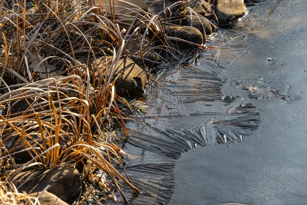 - Voorkomen dat de vijver dichtvriest. Plaats een ijsvrijhouder, luchtstenen of een luchtpomp om een deel van het vijveroppervlak open te houden. Het water blijft op deze plaatsen in beweging waardoor het geen kans krijgt om dicht te vriezen. Let erop dat luchtpompen de onderste laag van de vijver niet verstoren. Zo blijft het water op de bodem lekker warm.